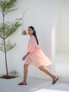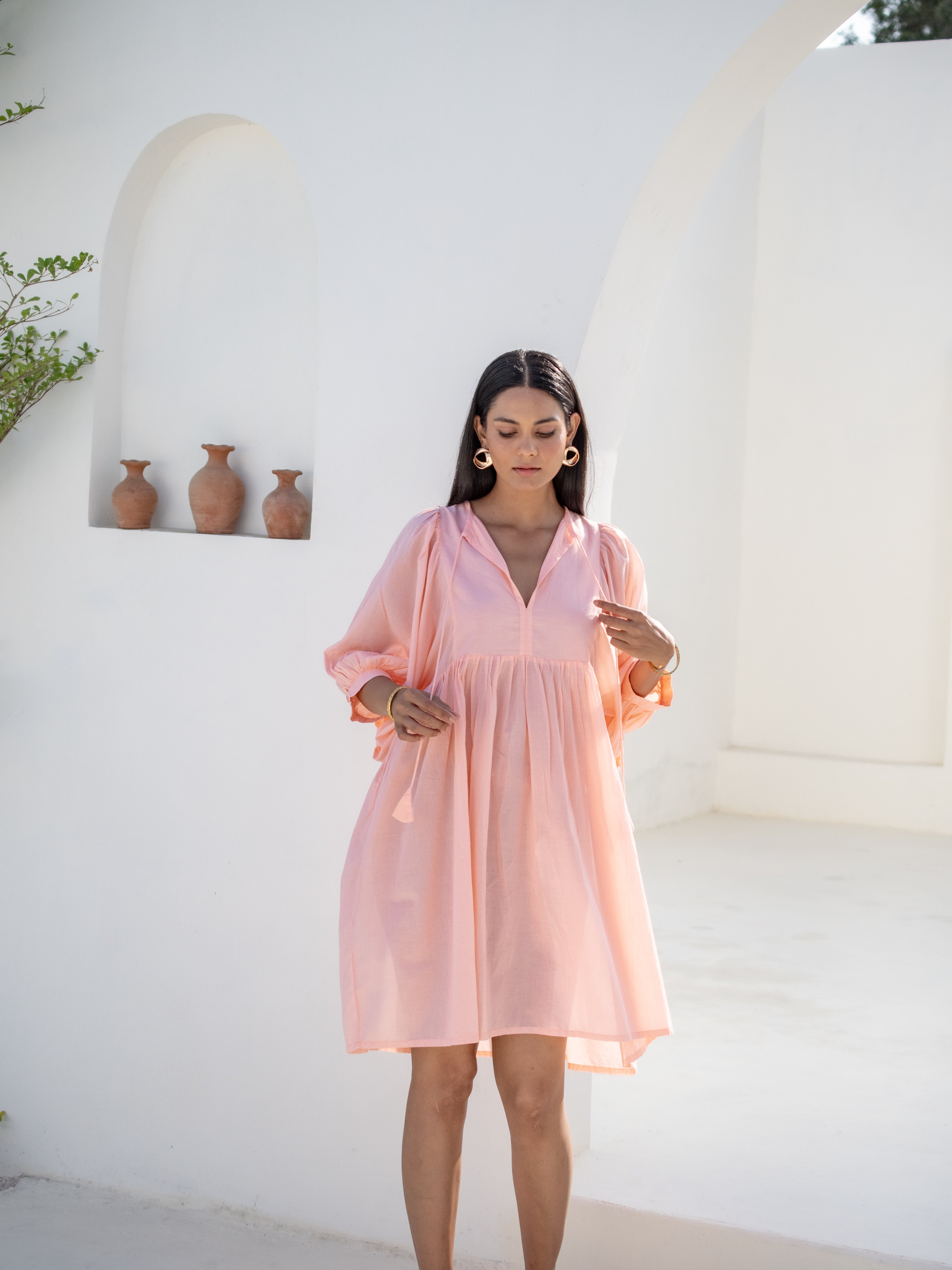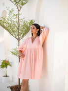 Soft Peach V-Neck Cotton Mini Dress