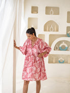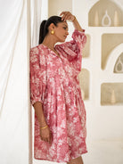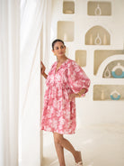 Embrace effortless elegance with this pink floral smock dress. Featuring a relaxed fit, puffed three-quarter sleeves, and a breezy silhouette, this dress is perfect for casual outings or brunch dates. Crafted from lightweight fabric, it ensures comfort and style in equal measure.